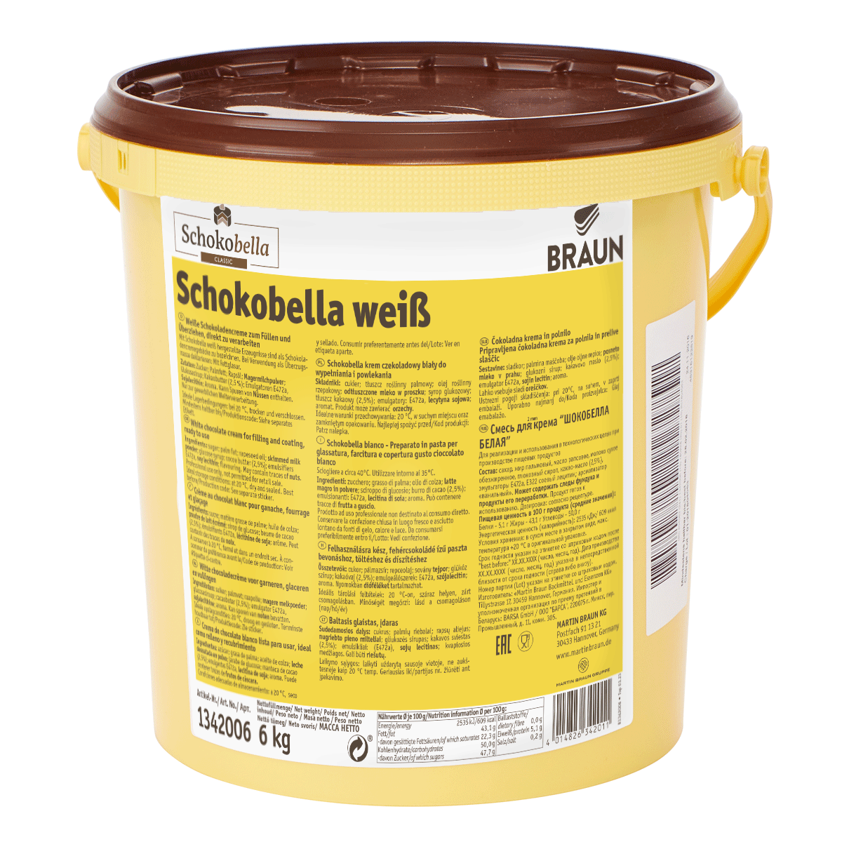 Ready to use white chocolate cream. Can be flavoured with Dessert Paste. Can be whipped to give more volume. Not bake proof.