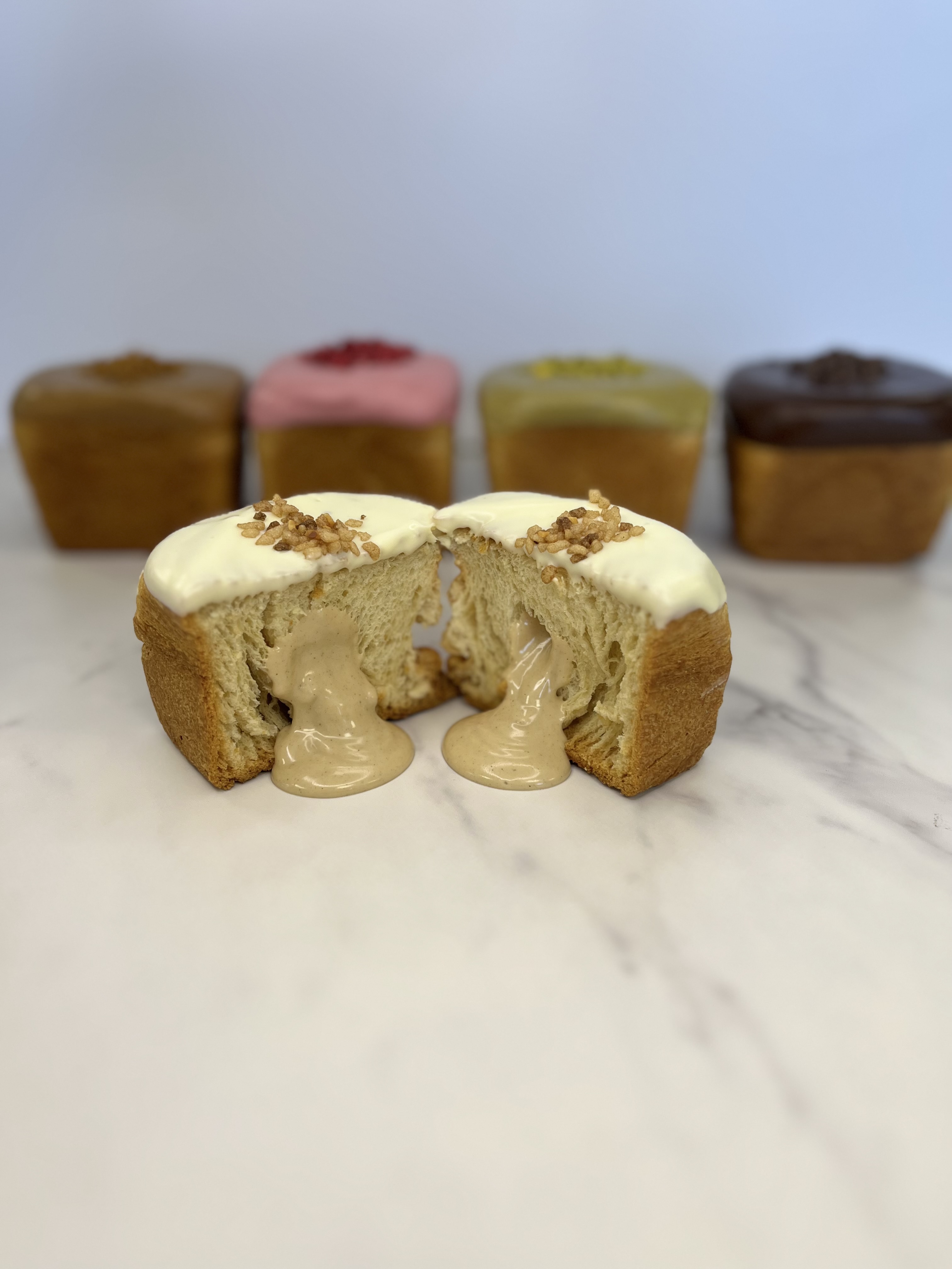 An uncut coloured puff pastry margarine with good plasticity, tolerance and good lift qualities.